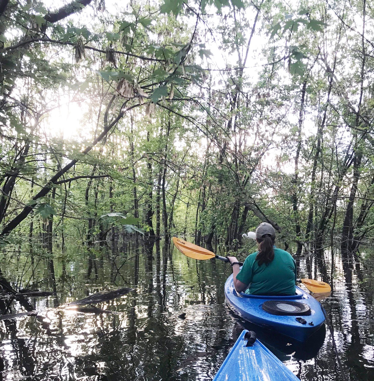 - We will have to bump over downed logs and paddle through narrow spaces between tree trunks and branches.