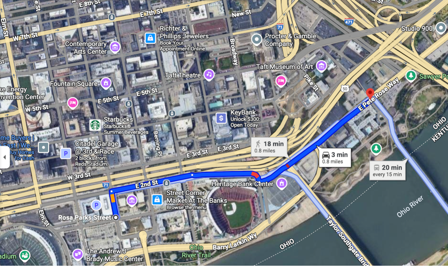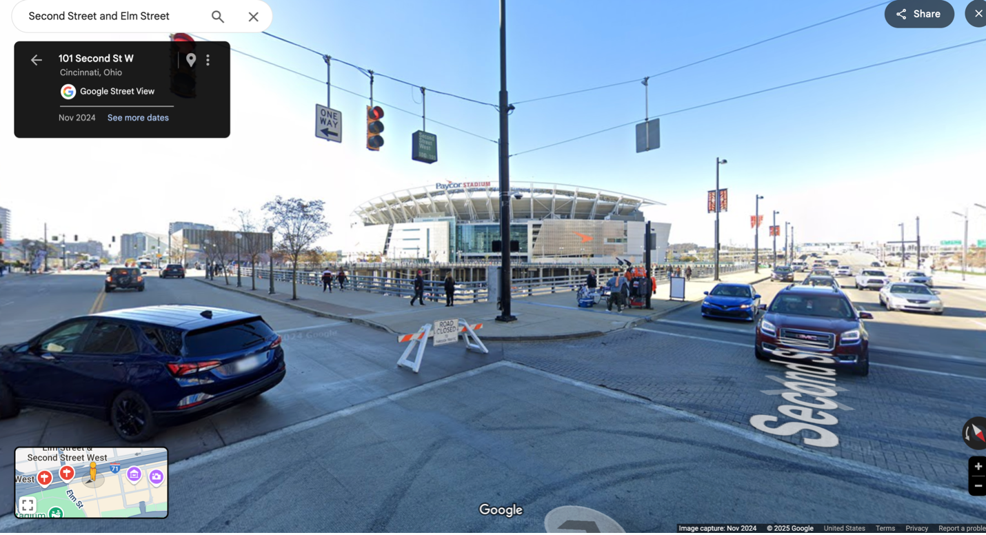 The event takes place on 6/28/2025 from 11:30p-3:30p. We will meet at the intersection of Second St. and Race St. at the corner closest to Paycor Stadium (see picture below) and then walk over together to the parade cleanup route.