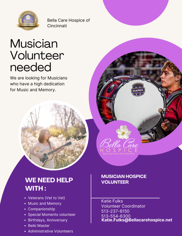 Join us Your music can be more than performance-it can be presence, love, and legacy. Become part of Bella Care Hospice's mission to honor life with dignity and compassion.