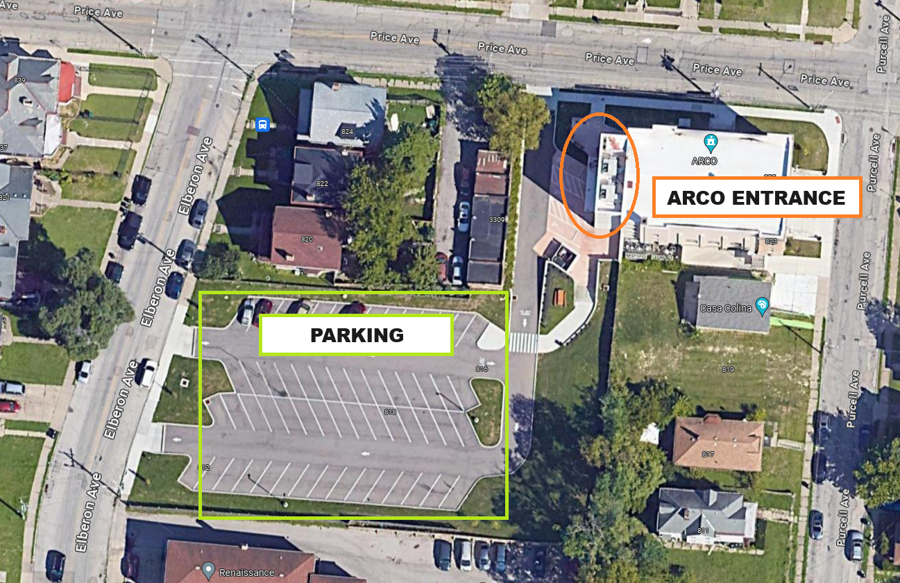 This opportunity takes place inside the ARCO community building in East Price Hill (3301 Price Avenue, Cincinnati, OH, 45205). Free parking is available on the street or in the large parking lot adjacent to the building. Please come to the west double-door entrance to ARCO upon arrival, where Tifani will meet you!