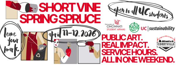 Short Vine Spring Spruce is a collaborative, multi-day neighborhood activation led by the Center for Community Engagement in partnership with UC Sustainability, Keep Cincinnati Beautiful, and the Corryville Community Development Corporation.