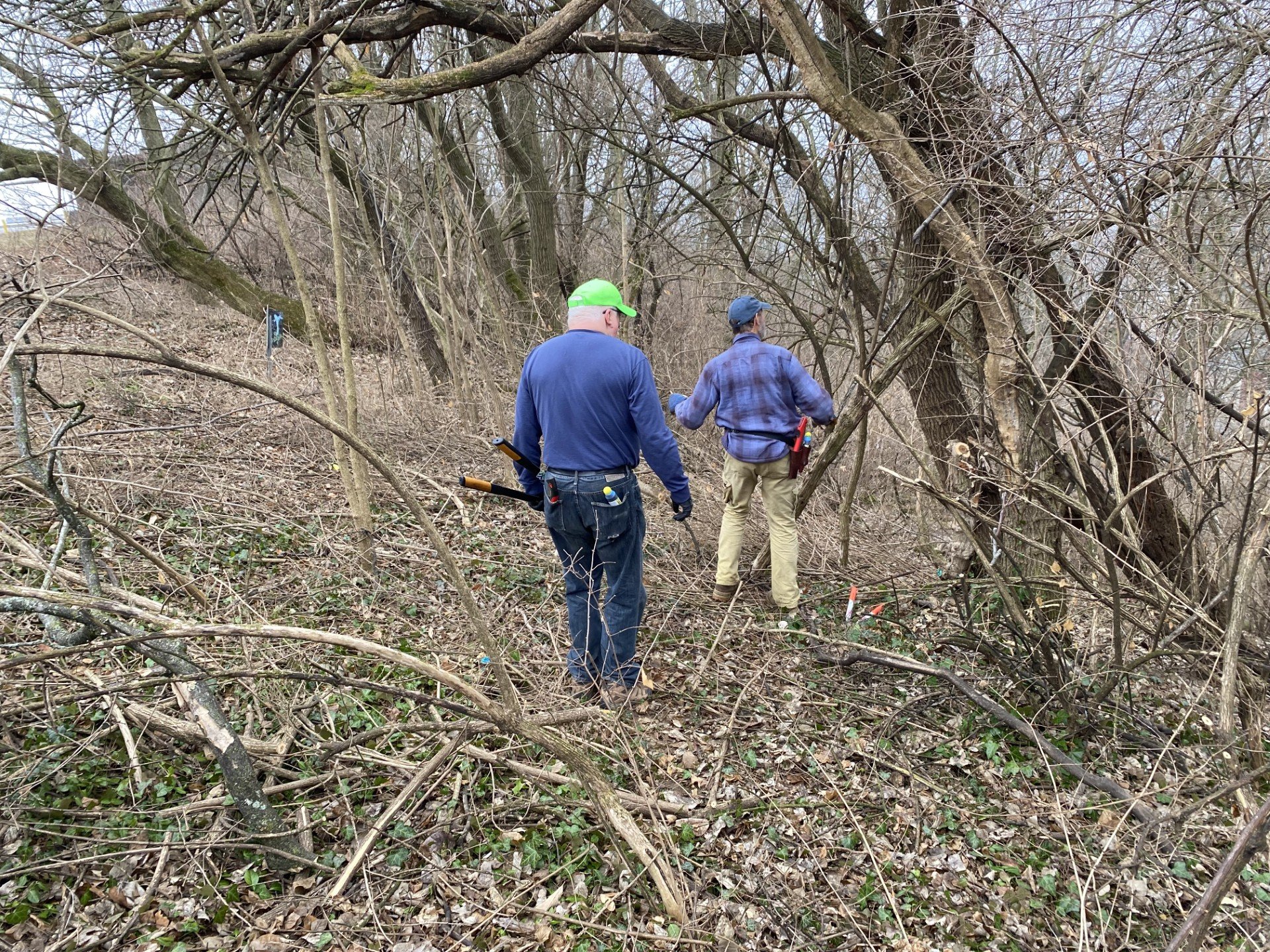 FOCUS: We will be tackling different invasive plants depending upon the season. This may include - Breaking down honeysuckle with loppers and handsaws* - Cutting out small sections of vines on trees with handsaws* - Removing and bagging garlic mustard or Japanese stiltgrass. *Trained Service People (TSP) will apply herbicide to cut stumps.