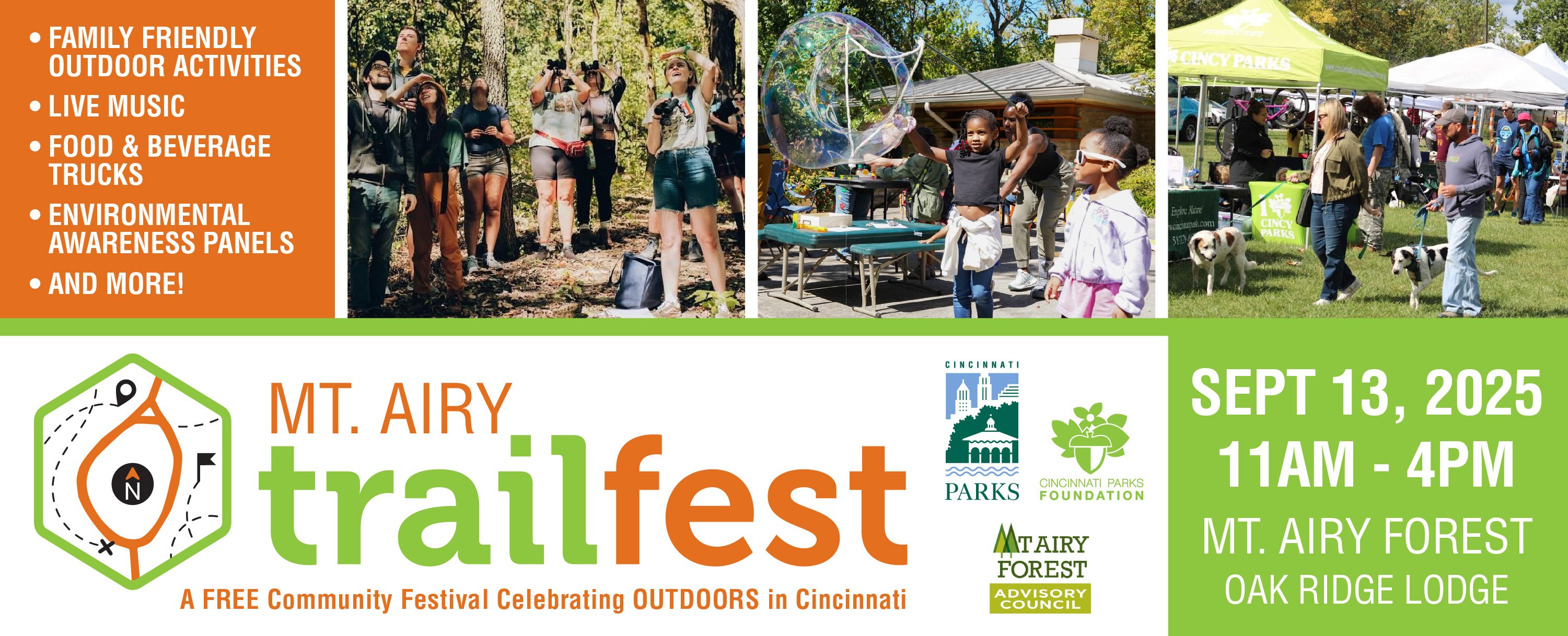 Join Mt. Airy Forest advisory Council (MAFAC) and Cincinnati Parks for the fourth annual Trail Fest event! This is a celebration of all things outdoors with speakers, activities, vendors, a kids area, a raffle, music, local food and beer. Attendees will have opportunities to hike, bike, run and have fun along the trails of Mt. Airy.