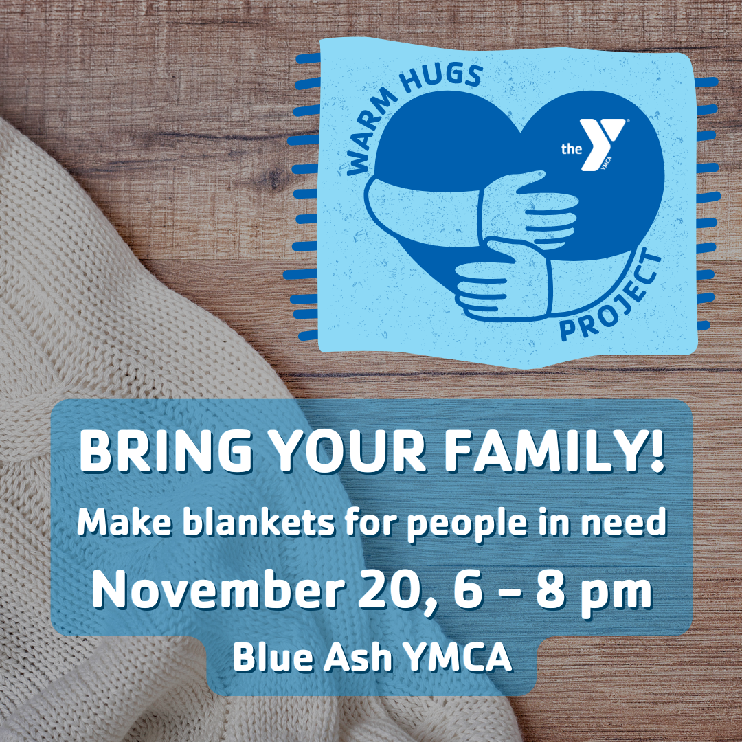 The Y is joining together to create 10 warm blankets that will be given to people in need this winter. Families and friends will work together to make the no sew blankets that will bring warm hugs and comfort this winter season. No training is necessary! Register your friends and family today! This is open to all ages! Blankets will be donated to a local food pantry.